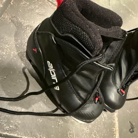 Alpina T 8 JR langrennsstøvler i størrelse 37. Modellen er en klassisk juniorstøvel med snøring og glidelås over vristen. Overdelen er i syntetisk materiale med tekstilfôr, og yttersålen er i gummi. Farge hovedsakelig svart med hvite og røde detaljer. Passer til klassisk langrenn for barn/unge. Sålens bindingssystem fremgår av bildene og kan sammenlignes med eksisterende ski/bindinger for å sjekke kompatibilitet.