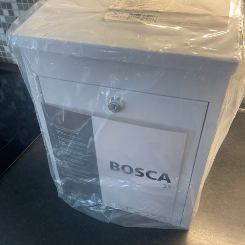 Bor i leilighetsblokk nå uten behov så dermed selger jeg et solid og dekorativ postkasse i hvitlakkert metall med klassisk design. Perfekt til hus, hytte eller som et rustikt innslag ved inngangspartiet.