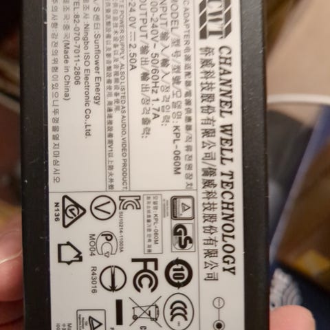 Channel Well Technology strømadapter med utgang 24V DC og 2.5 A. Adapteren har rund DC-plugg med låsering, og huset er i svart plast. Egnet som strømforsyning til kompatibelt IT- og elektronikkutstyr som krever 24V DC og opptil 2.5 A, forutsatt riktig pluggdimensjon og polaritet. Spesifikke tekniske data og sikkerhetsgodkjenninger fremgår av merkingen på adapteren.
