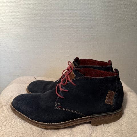 Overdelen er kledd med to ulike typer semsket skinn som skaper en stilig tekstur, samtidig som den øker slitestyrken. Innsiden av skoene er formet for å gi best mulig komfort.