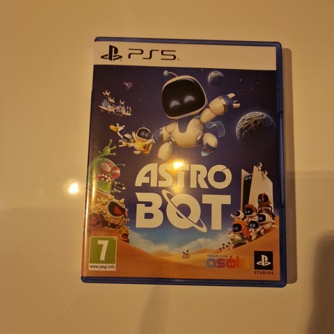 PlayStation Astro Bot PlayStation 5 spill. Fysisk utgave på disk i standard PS5-cover. PEGI 7-års aldersgrense, som angitt på coveret. Egnet for bruk på PlayStation 5-konsoll med diskdrev.