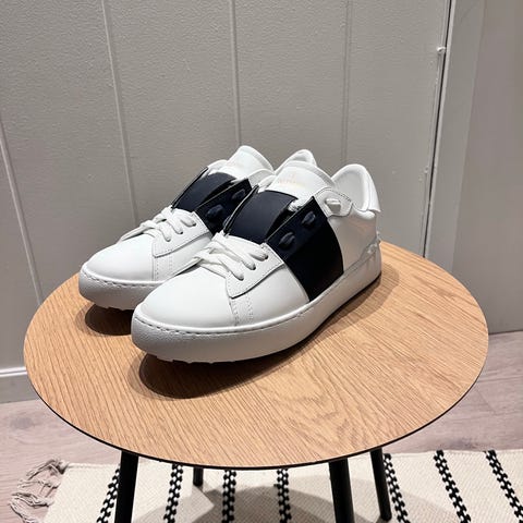 Christian Louboutin sneakers/joggesko i størrelse 40. Modellen er lave sneakers i svart farge med karakteristisk rød yttersåle. Overdel i tekstil/skinn med nagledetaljer i front og snøring. Innside i skinn og flat gummisåle. Egnet som fritids- og hverdagsko.