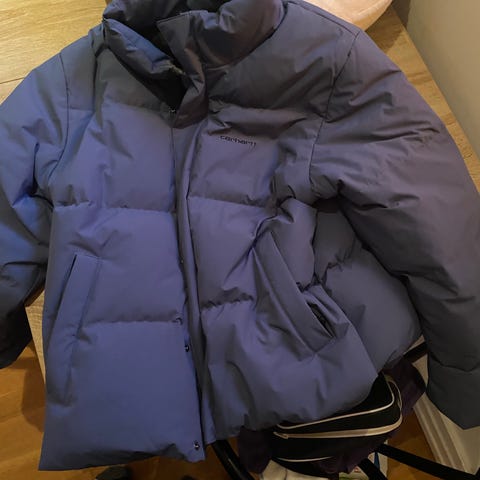 Carhartt jakke i fleece for herre i størrelse L. Jakken er svart og har hel glidelås i front. Den har brystlomme med glidelås og Carhartt-logo, samt to sidelommer med glidelås. Fleece-materialet gir myk og varm komfort, egnet som ytterjakke i mildt vær eller som mellomlag under en ytterjakke i kaldere temperaturer.