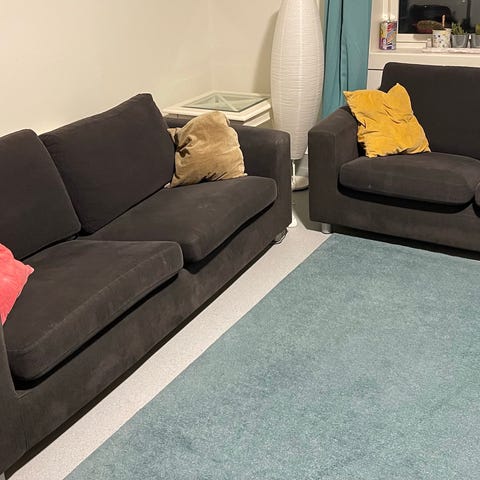 Godt brukt, svært komfortabel kvalitetsofa gis bort ved rask henting. Den har en del merker fra katten som har klort (se bilde). Kjøpt på Finn for 2 år siden for 10.000