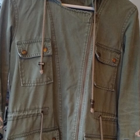 Amisu jakke for dame i størrelse 34. Jakken er beige og laget i polyester. Den har myk, pelslignende overflate, krage og knapper i front. Modellen har to lommer foran og er helfôret. Passer som ytterjakke i overgangssesonger eller på kjølige dager.