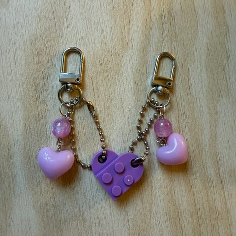 Dette er to nøkkelringer som kan festes samme for å lage et hjerte
