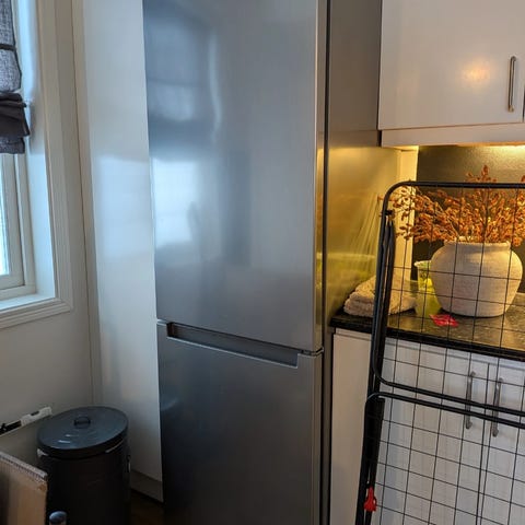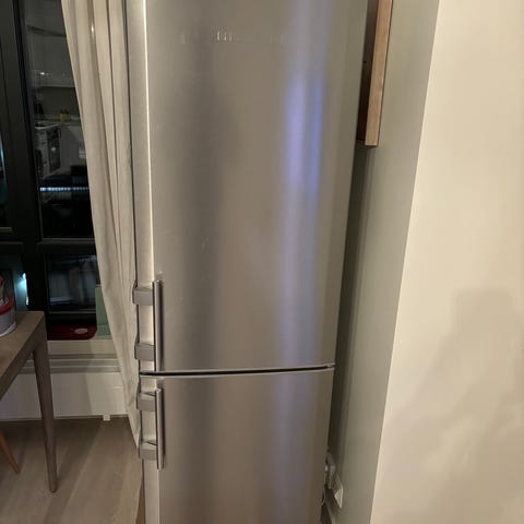 Selger kombiskap i børstet stål kjøpt nytt på IKEA i 2016. Skapet har slitasjeskade på nedre hengsle til øvre dør (se siste bilde), døren fungerer men er litt løst. Kjøle og frys funksjonen er i topp stand. Høyde 185cm