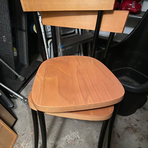 Praktiske og med god sittekomfort. Største høyde er 82 cm. Sittehøyde er 45 cm. Gi bud!