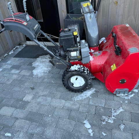 Stor fres med en Briggs & Strattion 1100motor på 8hk. Den har lys og elektrisk sving og høyde justering av utkaster tut. Motor Har fått renset forgasser og motor har fått ny olje. Starter lett å går fint.