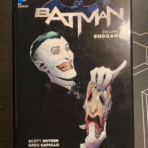 DC Comics Batman Death of the Family tegneseriebok. Inneholder Batman-historien «Death of the Family» skrevet av Scott Snyder og illustrert av Greg Capullo. Hardback-utgave på engelsk med omslagskunst som viser Jokeren. Egner seg for lesere som samler på eller leser Batman- og DC Comics-serier i bokformat.