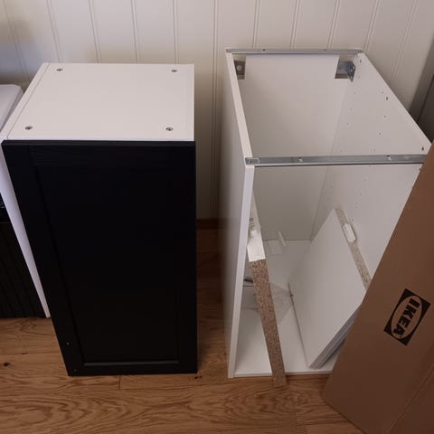 Vi selger alle de hvite overskapene til kjøkkenet vårt til en billig peng. De er litt krem-hvit i fargen. De er like i størrelsen som hejsta og nickebo fra IKEA. De fleste i str 40x80