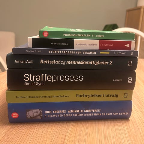 Samling av lærebøker i rettsvitenskap med fokus på strafferett og straffeprosess. Bøkene dekker blant annet norsk strafferett med systematisk fremstilling av frihet, forbrytelse og straff, utvalgte forbrytelser etter straffeloven, samt grunnleggende regler og prinsipper i straffeprosess. Egnet som pensum- og referanselitteratur for jusstudenter og andre som arbeider med eller studerer strafferett og straffeprosess.