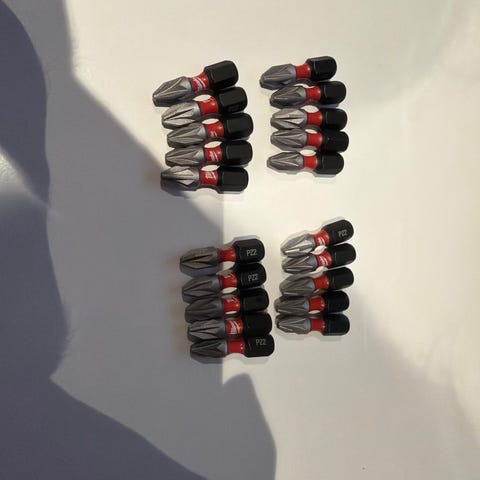 Milwaukee Packout verktøykasser i plast, i rød og svart farge. Kassene er stablebare og utformet for organisering og transport av verktøy og tilbehør. Hver kasse har håndtak for enkel bæring og låsemekanismer for sikker sammenkobling. Egnet for bruk på verksted, byggeplass eller i garasje for systematisk oppbevaring av håndverktøy, elektroverktøy og smådeler.