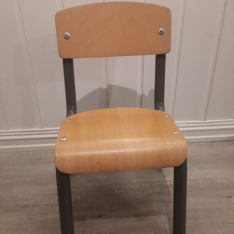 Lav barnestol med stålben. Passer til barn ca. 2-4 år.