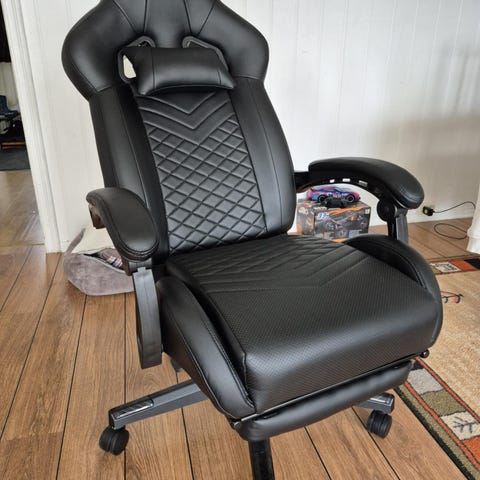 Selger en DXRacer gamingstol som er godt brukt. Den har tydelige slitasjemerker i setet og noe kosmetisk slitasje ellers, se bilder. Trekket er slitt enkelte steder, men stolen er fortsatt svært god å sitte i.