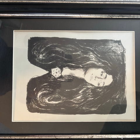 Helene Knoop «Syndefallet», håndkolorert litografi, 4/90