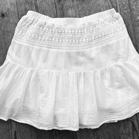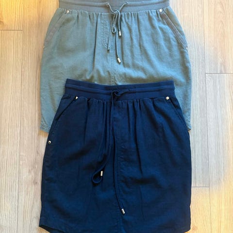 RAH Oslo lin skjørt i hvit farge for dame i størrelse 34. Skjørtet er laget av 100 % lin og har elastisk linning med knytebånd for justerbar passform.