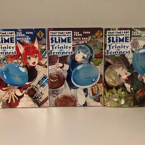 That Time I Got Reincarnated as a Slime manga samleboks med bind 1–6. Serien er på engelsk og følger hovedpersonen Rimuru i en fantasyverden. Bokssettet inneholder seks pocketbøker med illustrert omslag, samlet i en illustrert eske. Egner seg for lesere som liker manga, fantasy og isekai-historier.