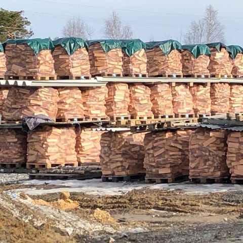 Veden er hogd vinteren 2024/2025 og tørket under pallehetter siden mars 2025.