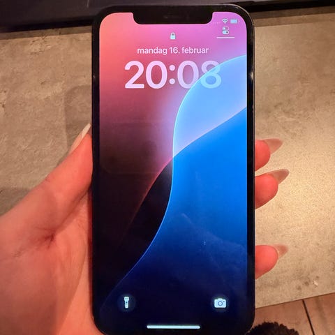 Apple iPhone 12 med 64 GB lagringskapasitet i svart. Batteriinformasjon med kapasitet på 92 % (kan endres over tid). Lader eller boks følger ikke med.