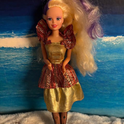 På denne dukken kan du snu på håret, veksle mellom brunt og rosa...