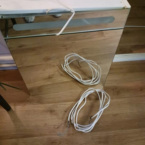 Speilskapet er i hvitlakkert metall, har skyvedører og hyller for oppbevaring av baderomsartikler. Øverst er det innebygd lysarmatur som gir belysning foran speilet, samt en stikkontakt.