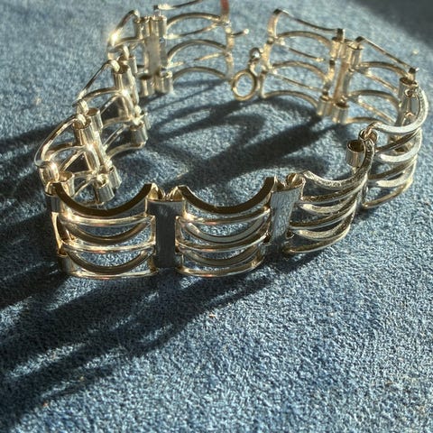 Nydelig armbånd i gullfarget sølv med emalje ,desverre er låsen skiftet ut men er nå mere bruker vennlig..vil vurdere saklige bud !