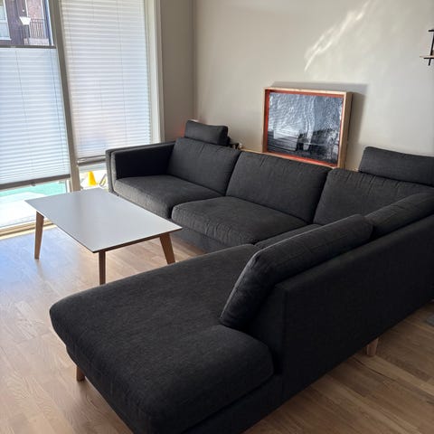 Hvit sofa treseter og toseter. To sofa bord,svart. Sofa fra bohus.bord fra møbelringen. Sofa selges for kr.6000. Bord kr, 800 for begge.