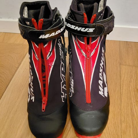 Lite brukt Madshus Hyper JRR langrennsstøvler i størrelse 39. Modellen er en junior/langrennsstøvel med god støtte. Støvlene har overdel i syntetisk materiale med snøring og glidelås i front, samt støtte i plast og borrelåsreim øverst for bedre støtte rundt ankelen. Lett foret