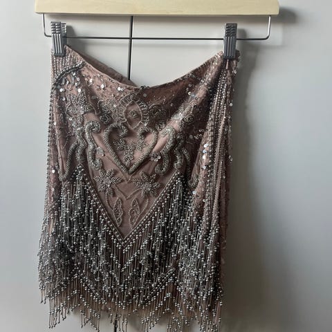 ASOS skjørt i størrelse M. Skjørtet er laget i viskose og har et flerfarget mønster i lyse pastelltoner. Modellen har glidelås i siden og stoffet er lett og mykt, egnet til hverdagsbruk eller mer pyntede anledninger avhengig av styling.
