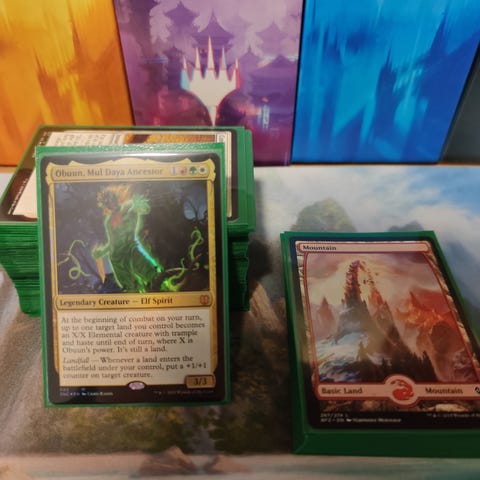 Alle precons ble puttet i sleeves rett etter at de ble åpnet og har ikke vært ute av sine sleeves siden. Fargen på sleeve passer til temaet/type farge/fargen på artwork.