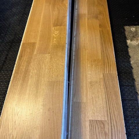Har ca 6kvm demontert laminatgulv med eikmønster i lys til middels brun tone. Passer for deg som ønsker et gulv med treutseende og slitesterk overflate hvis du har bruk for godt brukt laminat til ymse prosjekter. Plankene har klikksystem for enkel montering. Egnet til bruk i tørre innendørsrom. Varierende tilstand på falser, sikkert noen kvm som er brukbart.