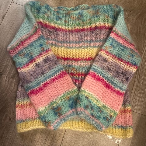 Nydelig genser fra knitteriet, selges grunnet den ikke passer meg lenger❣️ Ingen synlige bruksmerker, blitt pent brukt. Veldig fin nå til våren!