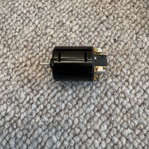 Elektrisk børstemotor med 12T vikling, egnet for bruk i radiostyrte biler og andre RC-modeller som støtter denne typen motor. Motoren har aksel ut på én side og leveres med ferdigmonterte ledninger med kontaktstykker for tilkobling. På motorhuset er det advarsel om høy temperatur ved bruk. Passer for hobbybruk der det kreves en kompakt DC-motor til RC-applikasjoner. Spesifikke tekniske data som spenning, turtall og effekt følger ikke med og bør kontrolleres mot modellens krav før montering.
