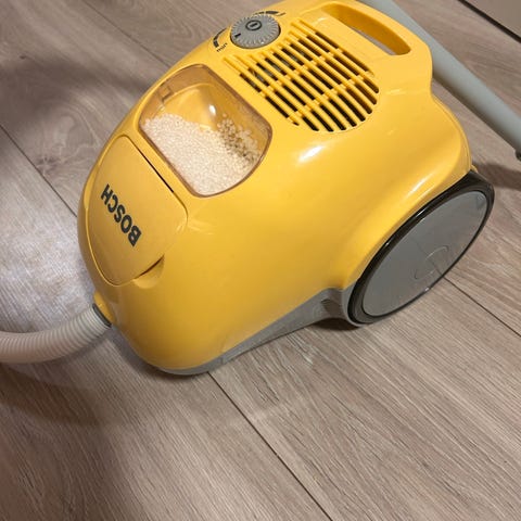 Kul lekestøvsuger til barn. Den kan ikke suge opp ting,men har både lyd og bevegelse på toppen når man skrur den på. De hvite ballene vil røre på seg når slår den på.