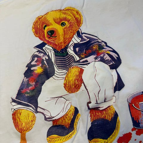 Ralph Lauren Polo genser for herre i størrelse L. Genseren er blå og laget av bomull. Den har rund hals, ribbestrikkede kanter og motiv av en bjørn på fronten. Ermene har RLX-detalj. Passer til hverdagsbruk og fritid i kjøligere vær.