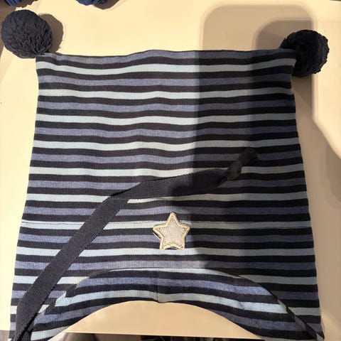 Kivat lue til gutt i størrelse 92. Lua er laget i ull og har beige farge. Egner seg til bruk i kjøligere vær for å holde hodet varmt. Passer til hverdagsbruk og uteaktiviteter for barn i aktuell størrelse. Kjøpt feil str