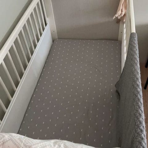 IKEA sprinkelseng i nøytral grå farge.