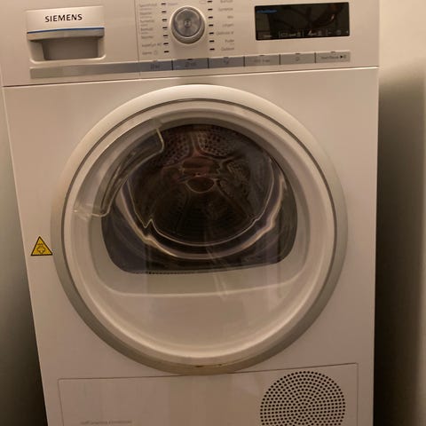 Siemens WT45W428DN kondenstørketrommel i hvit utførelse.