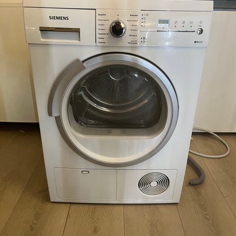 Siemens WT46W2E8DN kondenstørketrommel i hvit utførelse.