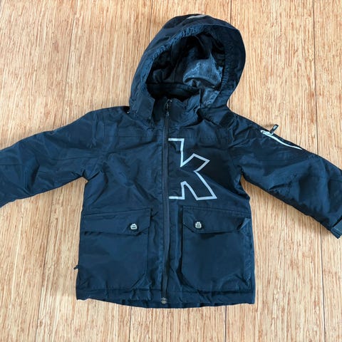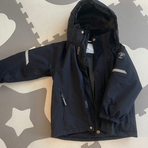 Selger denne mørkeblå, regntette vinterjakka i størrelse 90, da den ikke passer lengre. Godt, men pent brukt.