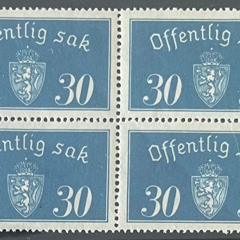 Norge 4-blokker postfrisk, nk tjeneste 35 + 36 **, 30 og 35 øre 1937