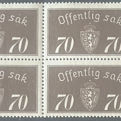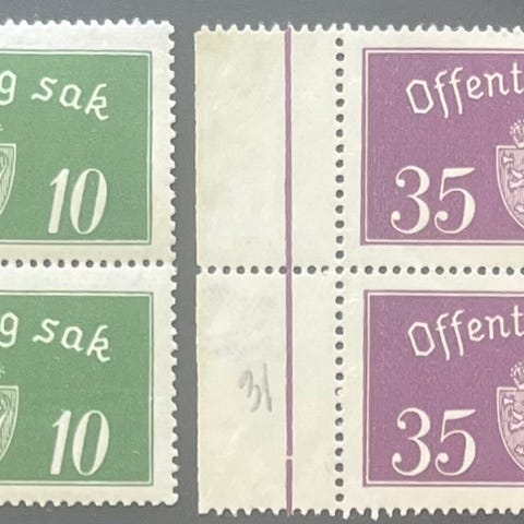 Norge 4-blokker postfrisk/ustemplet, nk tj. 37 - 39 *|**, 40, 60 og 100 øre 1937
