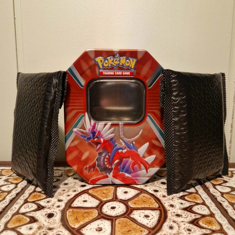 Jeg rydder i kortene mine og selger ferdigpakkede mystery-tins, packs og boxer med KUN ekte, offisielle Pokémon-kort!