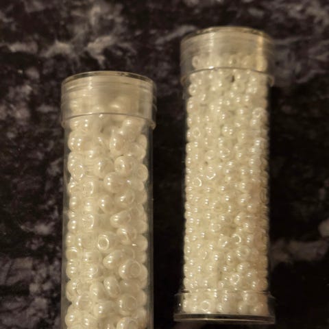 Jeg er sluttet og strikke pulsvarmere og selger derfor rør med perler som jeg har til overs. Prisen er pr. rør pluss porto. Bruker ikke fiks ferdig.