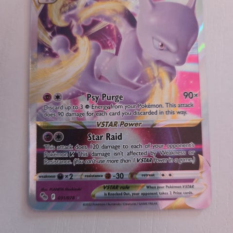 Pokémon Mewtwo GX samlekort. Kortet viser Mewtwo GX med angrepene Full Burst, Super Absorption og Psystrike GX, og har 190 HP. Standard Pokémon-bakside. Egnet for samling eller bruk i Pokémon Trading Card Game.