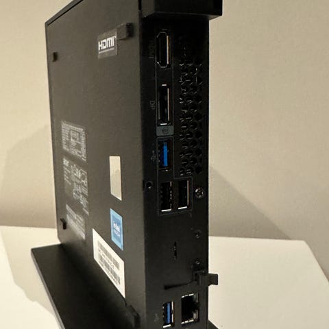 Tilkobling: USB 3.0, DisplayPort, VGA, Gigabit Ethernet.