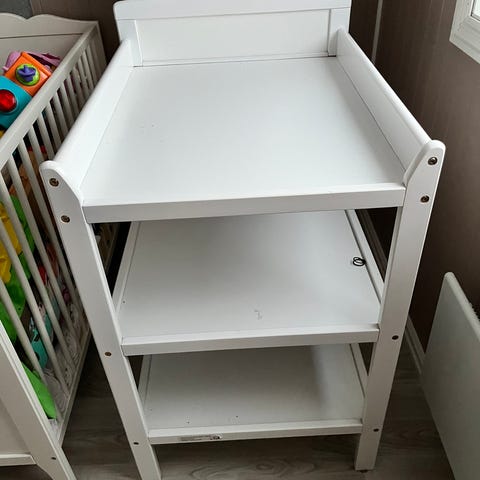 Selger et pent stellebord som passer perfekt til babyrommet. Bordet har god plass til bleier, klær og andre nødvendigheter, og er stabilt og trygt for barnet.
