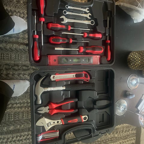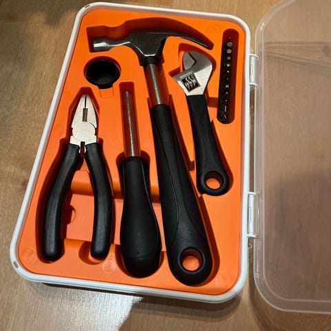 Verktøysett med 39 deler i koffert. Settet inneholder blant annet hammer, tang, avbitertang, skrutrekkere, unbrakonøkler, bits med holder og hobbykniv. Leveres i plastkoffert med formtilpasset innredning for oversiktlig oppbevaring og transport. Egnet til enkle reparasjoner og vedlikeholdsoppgaver i hjemmet eller på hytta.
