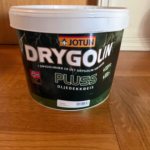 Det burde iallfall være 5l igjen i spannet - hvis ikke mer. Ikke åpnet. Skvalper som det skal. Oppbevart korrekt i lunken temperatur - ikke i frost. Må hentes. Relativt ny dato og særs høy kvalitet på malingen; udiskutabelt en av markedets beste. Fargeklatten på spannet er korrekt. Avbildet hus viser fargen.